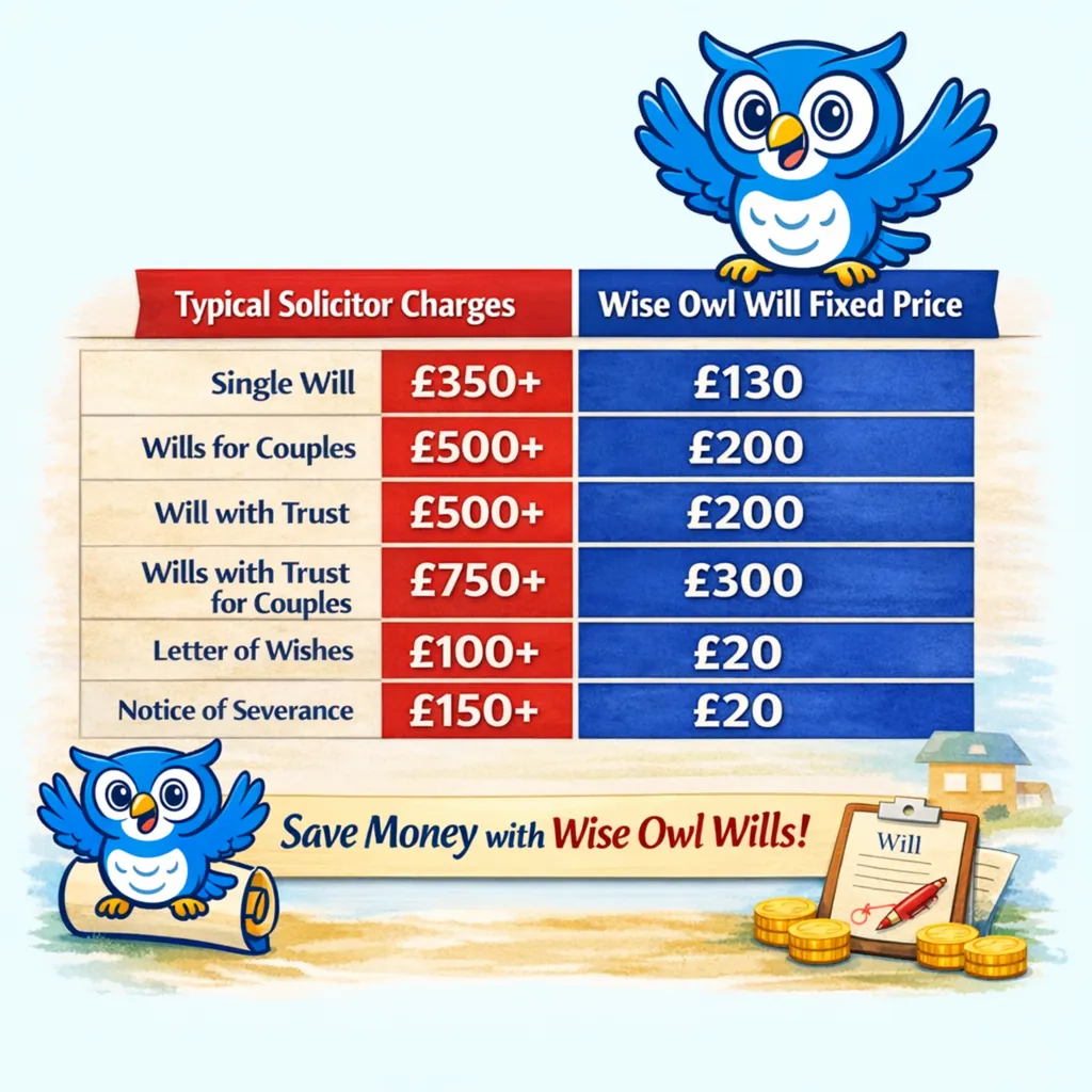 At Wise Owl Wills, we make writing a Will cheap, simple and stress-free. Our affordable and cost-effective will-writing service helps you to protect your loved ones and to ensure your wishes are legally recognised. We provide your Will to you within 7 days.